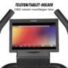 Praktiske detaljer gør cyklen nem at bruge i hverdagen. Skridsikre pedaler med stropper giver et sikkert greb under træningen, mens pulsmåler i håndtagene gør det nemt at følge intensiteten. En integreret telefon- og tablet-holder gør det muligt at følge træningsapps eller se underholdning under træningen.
